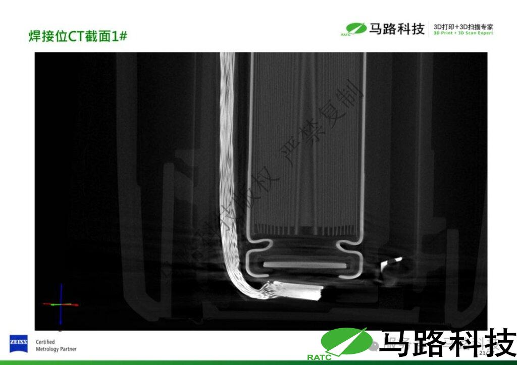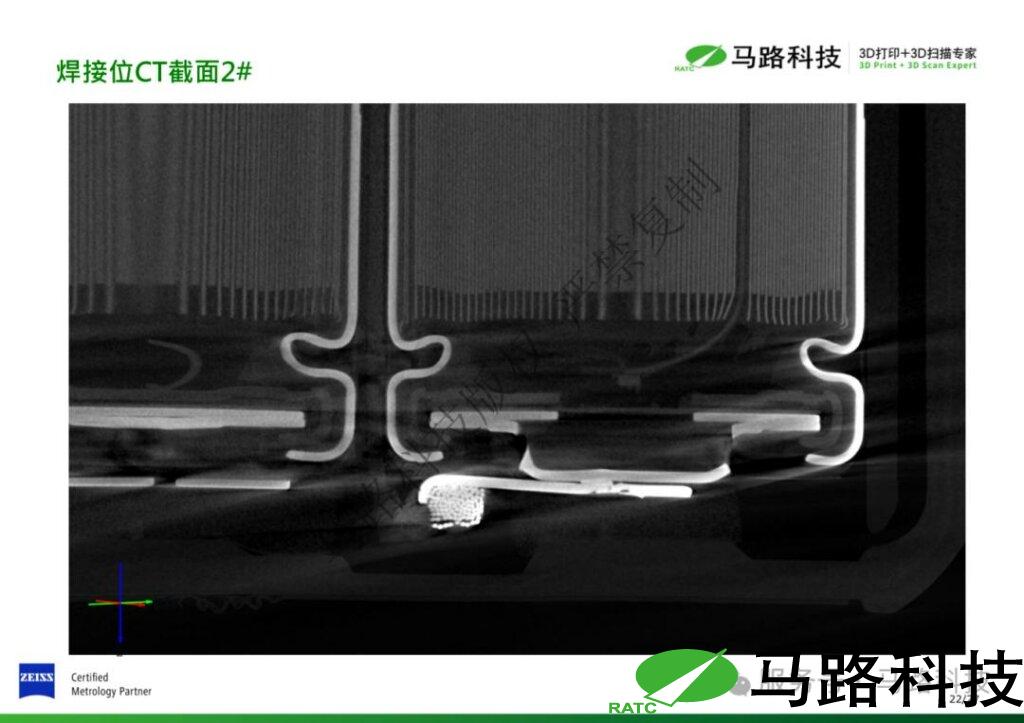 电池内部结构复杂,通过CT截面直观确认组件状态,特别是电池极耳与极柱的焊接质量,直接影响电池性能和安全性。若焊接不牢固,易导致电池短路或失效;排查电池内部部件的排列和固定情况,确保电池结构完整,运行稳定,符合工艺规范,降低电池失效风险,提高电池质量和使用安全。