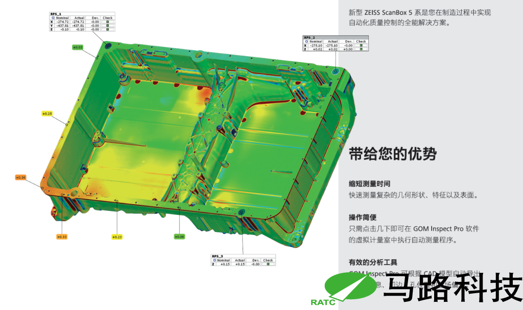 针对大型铸件(如汽车后底板)的全尺寸检测需求,提供全自动高精度检测,10分钟内完成复杂形位公差测量,结合智能软件实现GD&T偏差可视化。
