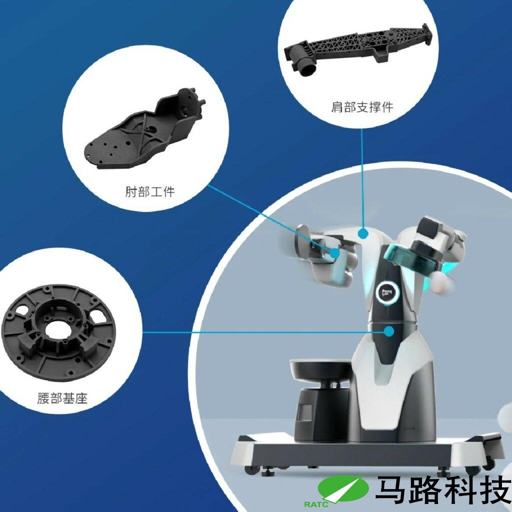 3D打印技术可应用于人形机器人的结构件制造,包括手臂、大腿、关节、肩部、胸部骨架、外壳等。马路科技为人形机器人的复杂结构制造提供了“一体成型设计+快速迭代”的双重优势,在材料应用上带来多个突破。