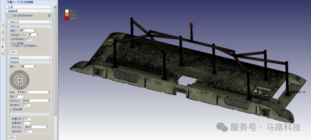 - 高精度实体网格:由表面三角形向内生成五面体网格,与中心四面体混合,网格数量更少、计算效率更高,且分析精度显著优于传统四面体网格