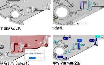 无需编程技能,直观且任务导向。该流程支持设置缺陷阈值、过滤缺陷,以及将缺陷分组和子集检查。同时,应用一系列检查和公差,增加灵活性,并支持不同基础元素。此外,我们优化了算法,减少了大型区域表面缺陷曲线的计算时间,提供高效、可靠的检测体验。